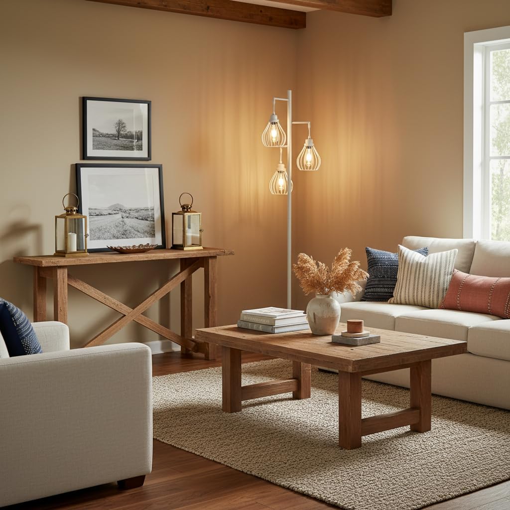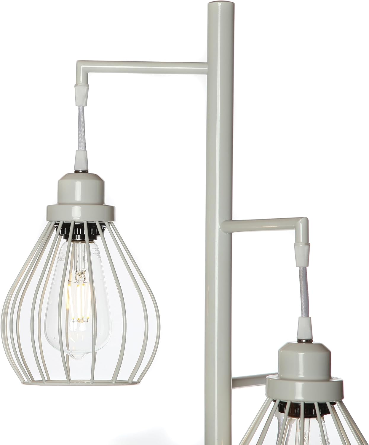 Brightech Teardrop LED Floor Lamp – Tree Standing Lamp with 3 Elegant Cage Heads & Edison Bulbs – Standing Lamp for Living Rooms & Offices – Tall Standing Lamp Ideal for Bedroom Reading – Alpine White