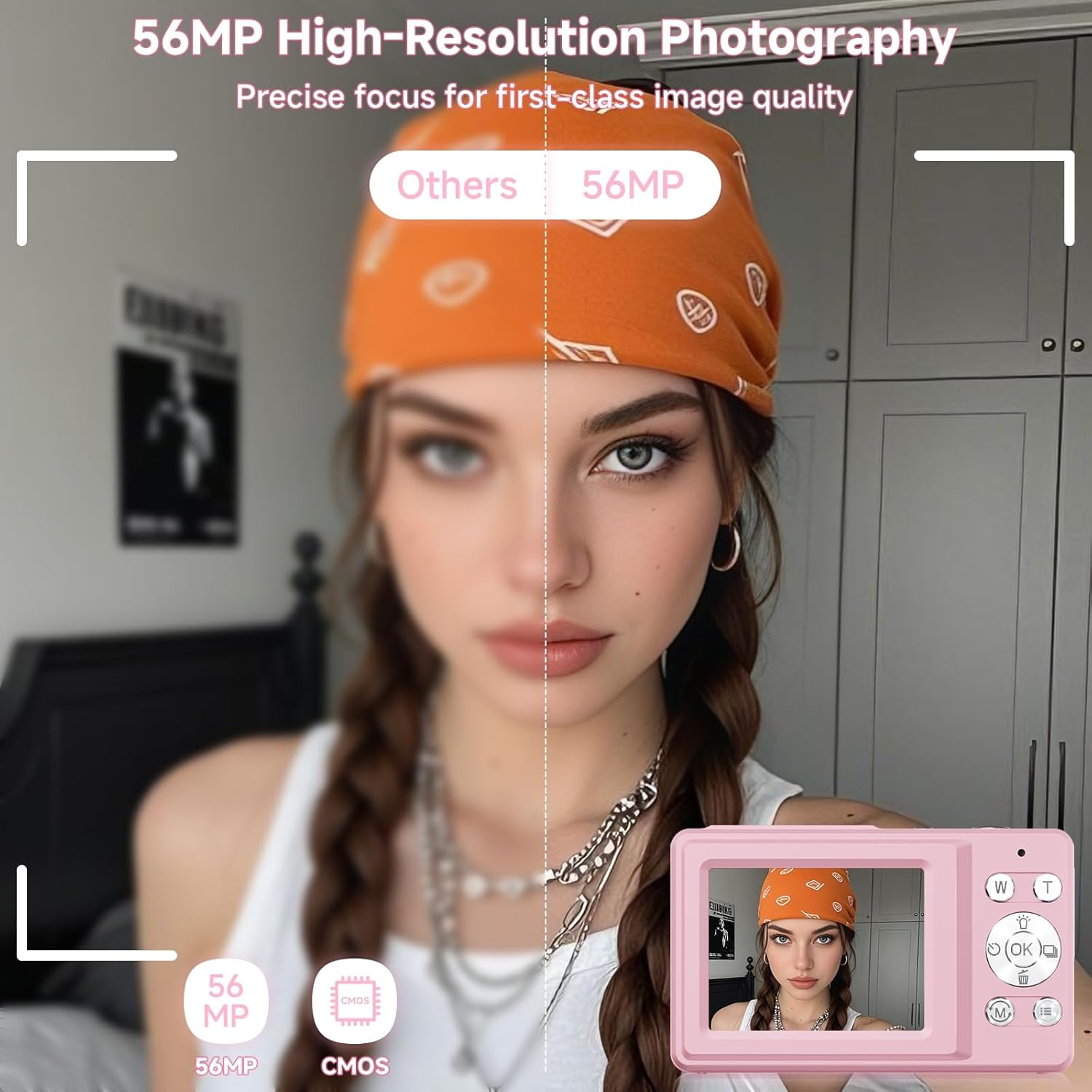 | Special Feature | Dual-screen,56MP,2.7k,Anti-shake,Face Detection,Smile Detect,16x Zoom,Selfies Camera,Self-timing,Continous Shooting,20 Filters |