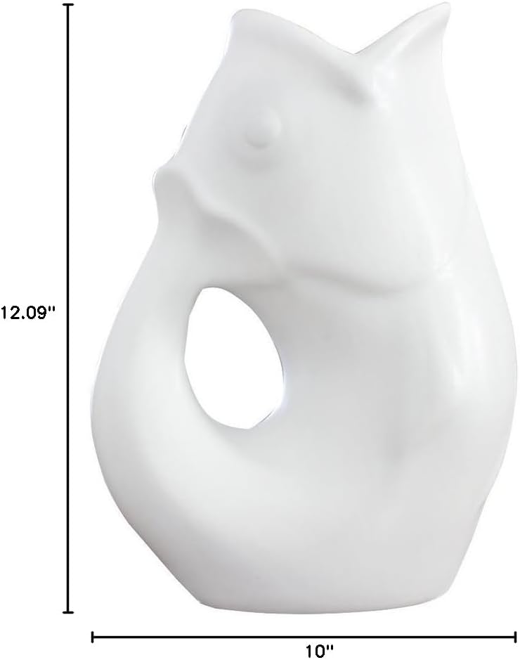 Beautiful Serving Pitcher. Produces whimsical gurgling sound. Crafted of durable stoneware. Capacity 42 oz. Size 9.5"H, 4"W, 6.75"L Gurgles with or without ice. Perfectly versatile for fresh cut flowers. Make a great gift!