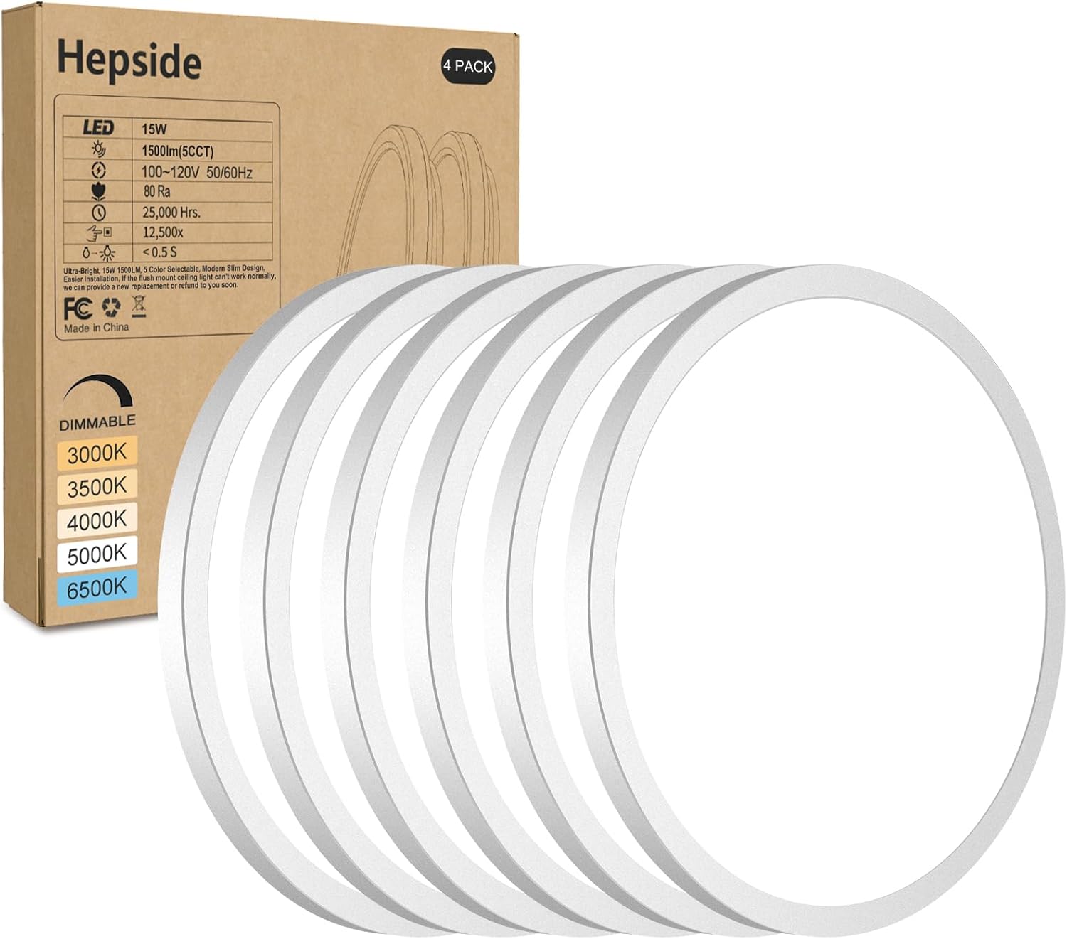 hepside 6Pack 12Inch LED Flush Mount Ceiling Light, Super Slim 24W LED Ceiling Light, Dimmable&3000K/3500K/4000K/5000K/6500K Adjustable Flat Ceiling Light Fixture for Bedroom,Living Room,Kitchen-White