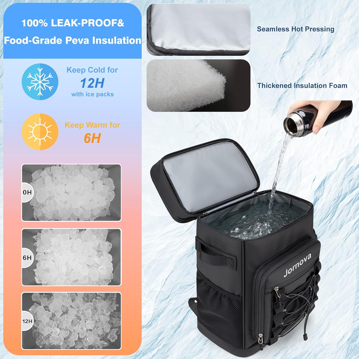 Stay organized and keep your refreshments perfectly chilled with the Jornova cooler backpack. This versatile backpack combines the convenience of a regular daypack with efficient cooling capabilities, making it ideal for picnics, beach trips, hiking, or outdoor events. The innovative design features insulated compartments that maintain temperature, while the backpack straps provide comfortable carrying convenience. Perfect for transporting cold drinks, snacks, and perishables, this cooler backpack eliminates the awkward bulk of traditional ice chests. The practical design includes multiple storage sections to keep your items organized and accessible. Whether you're heading to a tailgate, planning a day at the park, or need a reliable solution for transporting temperature-sensitive items, this Jornova cooler backpack delivers both functionality and comfort.