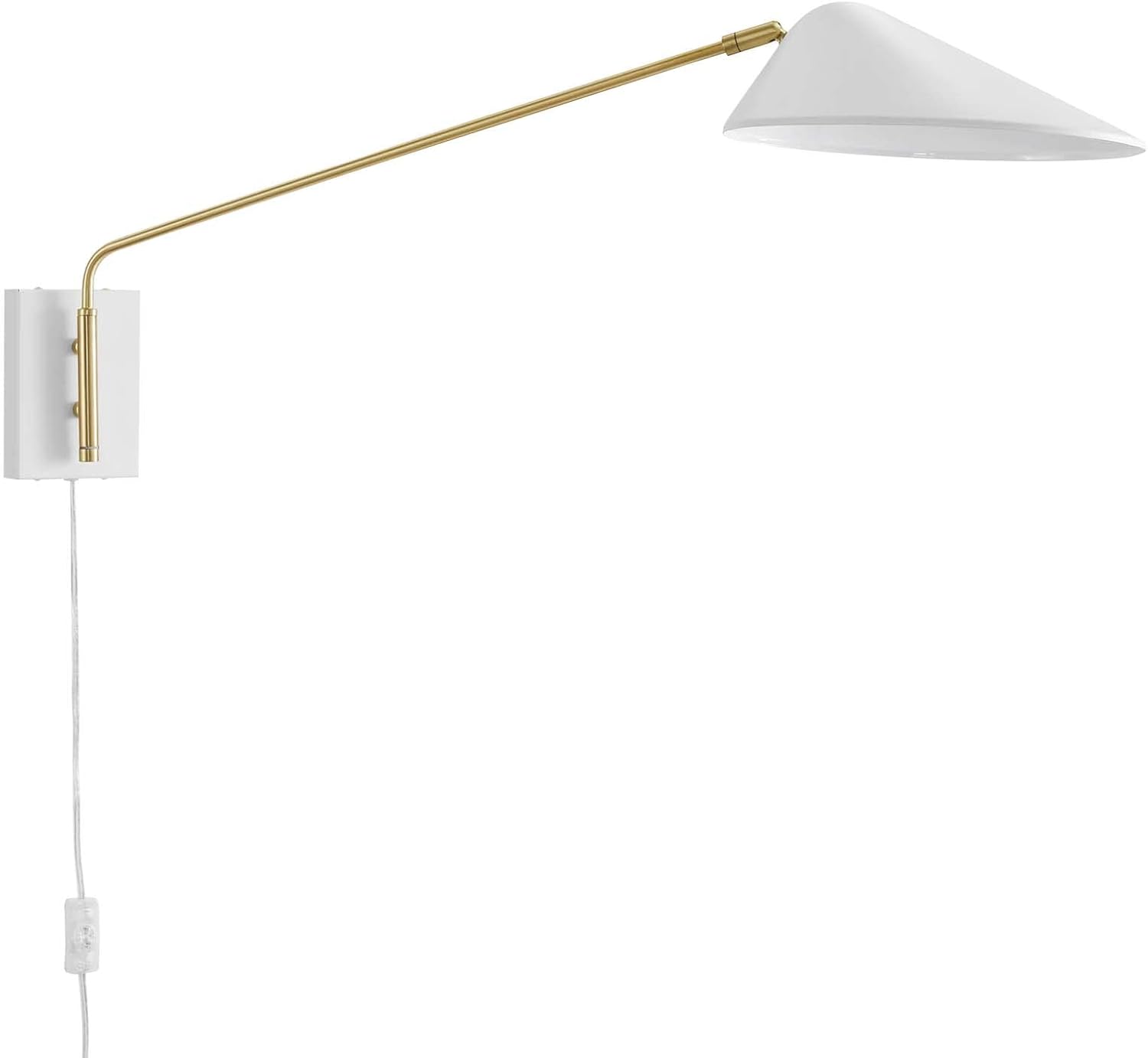 Experience visual comfort and pleasant reflections in your living room, bedroom, or hallway with the Journey 7" Swing Arm Wall Sconce. This mid-century modern wall lamp boasts a compact powder-coated metal backplate and a sleek matte shade anchored on a satin brass rod. With a left-right adjustable swing arm and complete swivel lampshade, the Journey Wall Sconce is a multi-directional luminary in the home. This modern wall lamp features an innovative 2-in-1 design allowing you to plug in the wall sconce anywhere in your home or create a sleek cordless look with the hardwire option, professional installation required. Clear power cord with an On/Off switch. Requires 1 E26 bulb, 40W max, or LED equivalent (not included). Compatible with dimmer switches (not included). Set Includes: One - Journey 7" Swing Arm Wall Sconce Product Dimensions: Overall Product Dimensions: 19"L x 11"W x 8"H Base Dimensions: 5"L x 4.5"W x 1"H Shade Dimensions: 12"L x 11"W x 4"H Cord Length: 79"L