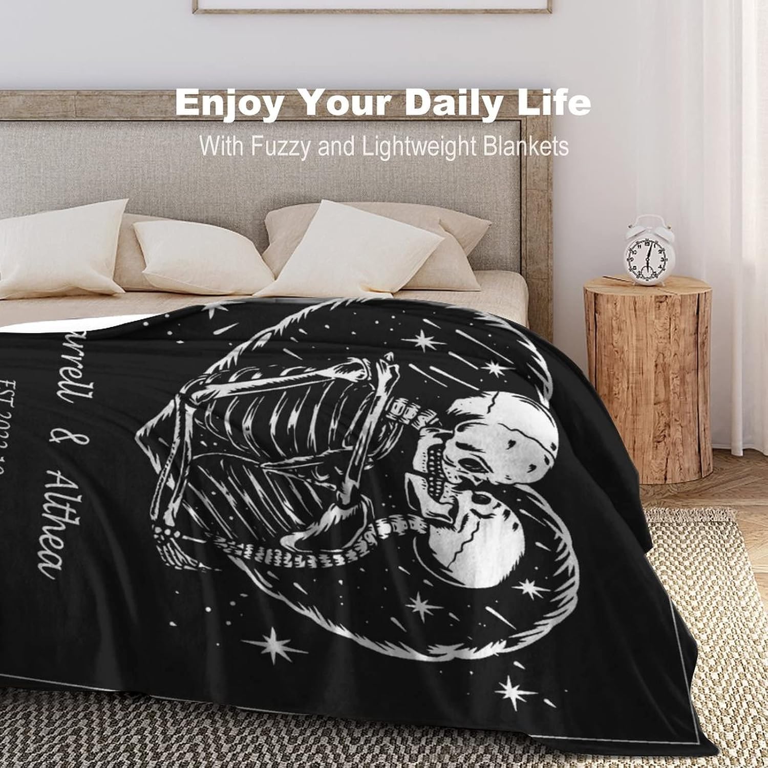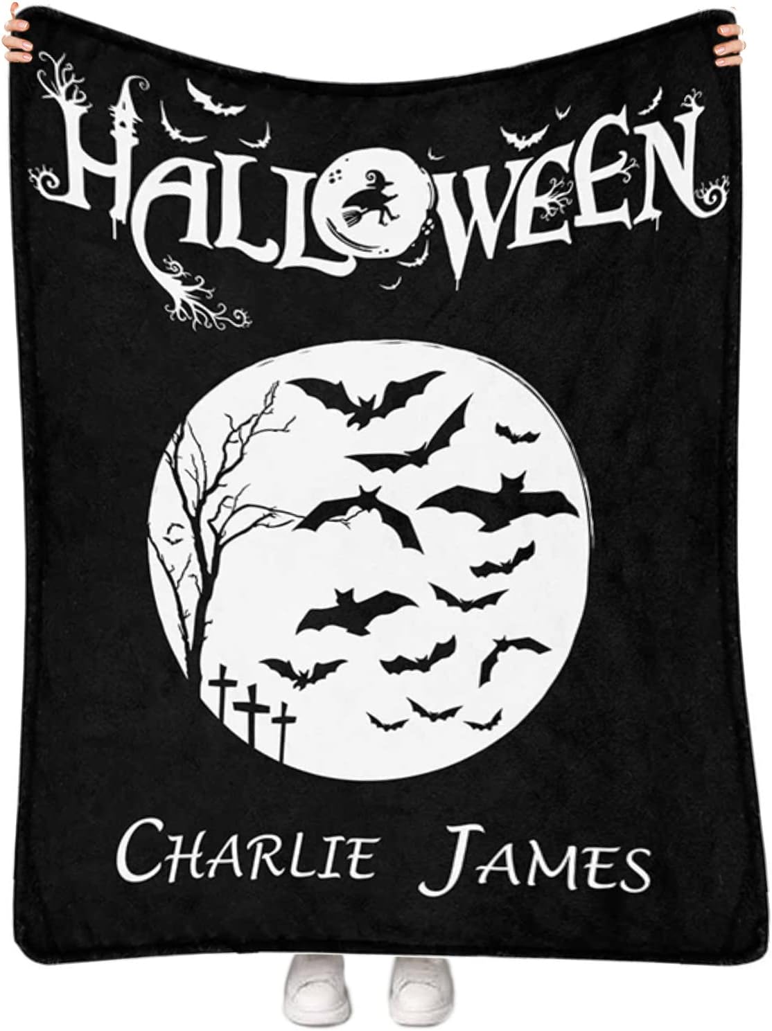 Customized blankets with the name yourself or you loved one, it is suitable for snuggling on sofas, beds, or even hanging on the wall as home decoration. We can print the name you provide on the blanket, such as family, friends, pets, favorite stars, which will be the most unique gifts or souvenirs gift for Halloween, Christmas, Thanksgiving day, Birthday, Anniversary!Features:Soft & WarmDifferent Themes to Choose From Made in USClearly PrintNever FadesMade of high quality anti-pilling fleece, which is soft touch, wrinkle resistance, pilling resistance, durable and comfortable, have a good touch and friendly to your skin, your children, your pet. Suitable for all seasons, perfect for bed, sofa, car, picnic, baby carriage, camping, tapestry, cold movie theater or traveling.Specifications Tips:30"x40" perfect for baby and pets40"x50" perfect for teens50"x60" and 60"x80" are suitable for adults and can wrap you fully.