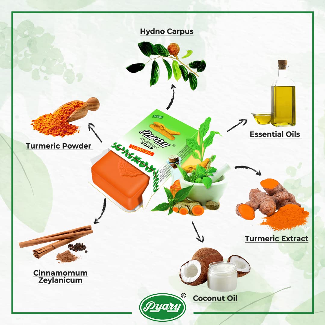 Discover the natural glow your skin deserves with Pyary Turmeric Soap, a handcrafted, plant-based skincare essential trusted for generations. Each bar is carefully made using premium turmeric, pure coconut oil, and other all-natural botanical ingredients that gently cleanse, hydrate, and restore your skin’s natural balance. Formulated for all skin types, including sensitive, dry, or acne-prone skin, Pyary Turmeric Soap delivers a calming and refreshing cleanse without harsh chemicals. Turmeric’s powerful properties help reduce breakouts, brighten dull areas, and even out skin tone, while coconut oil provides deep moisture and nourishment with every wash. Every bar is handmade with care, checked for quality, and produced using Pyary’s traditional soap-making methods perfected since 1930. Vegan, cruelty-free, and completely plant-based, this soap is an ideal choice for those seeking a clean, natural skincare routine. Whether used on the face or body, Pyary Turmeric Soap offers a soothing, hydrating, and revitalizing cleansing experience—leaving your skin soft, smooth, and naturally radiant.
