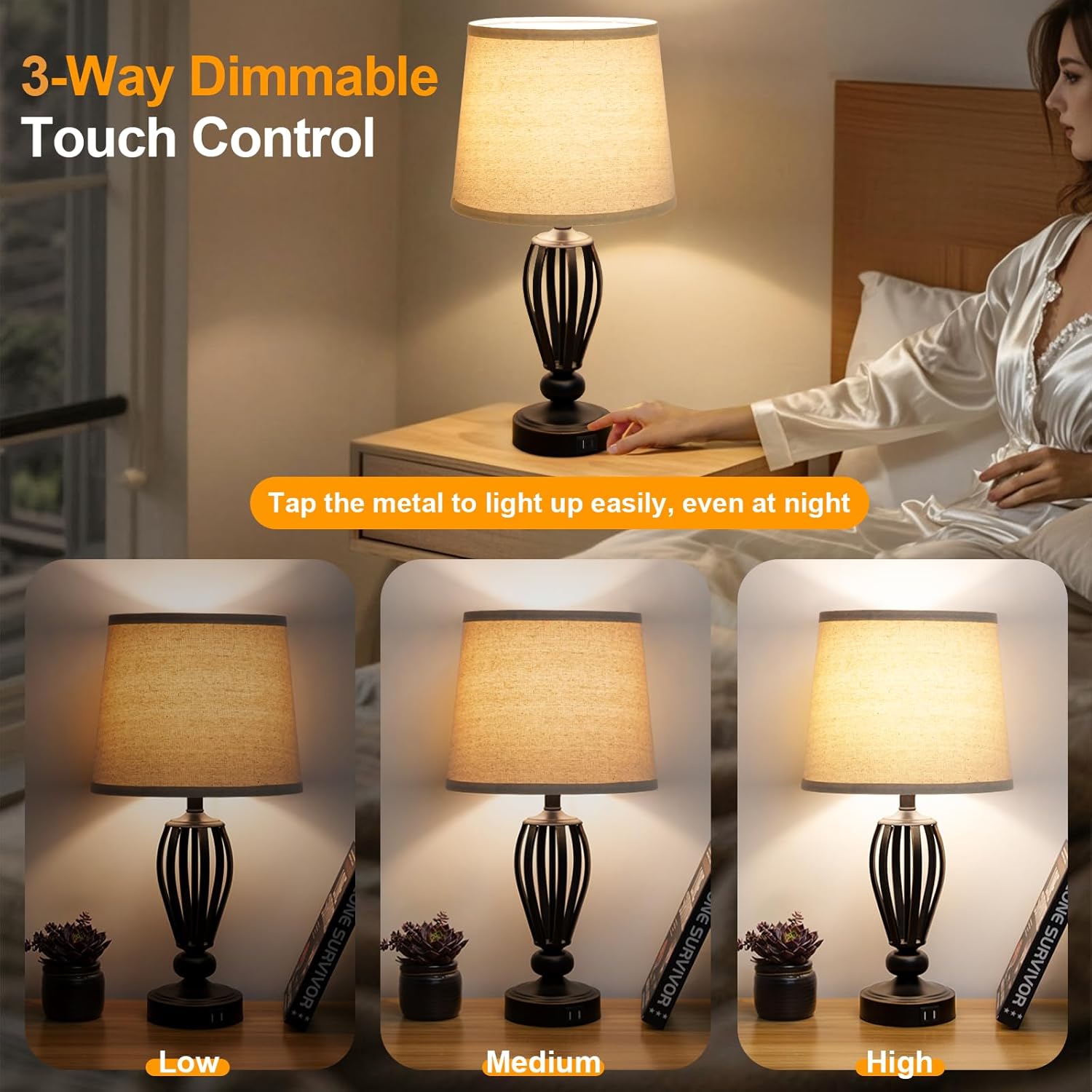 | Additional Features | 3 way dimmable, LED bulb included, Modern Farmhouse Design, Touch control, USB C+A charging ports |